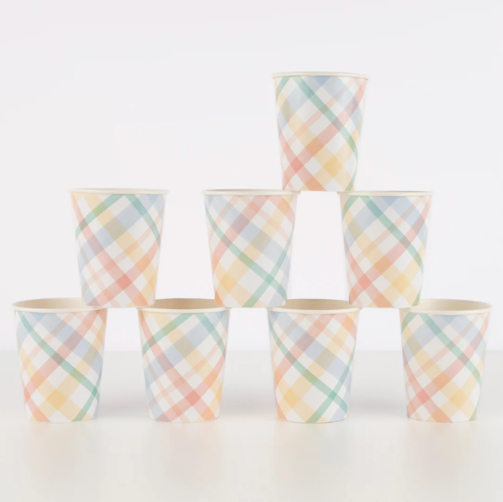 Add a touch of nostalgia to your party cups with these vintage-inspired plaid designs. They are perfect for any celebration where you want soft muted shades - ideal for baby showers and birthday parties.