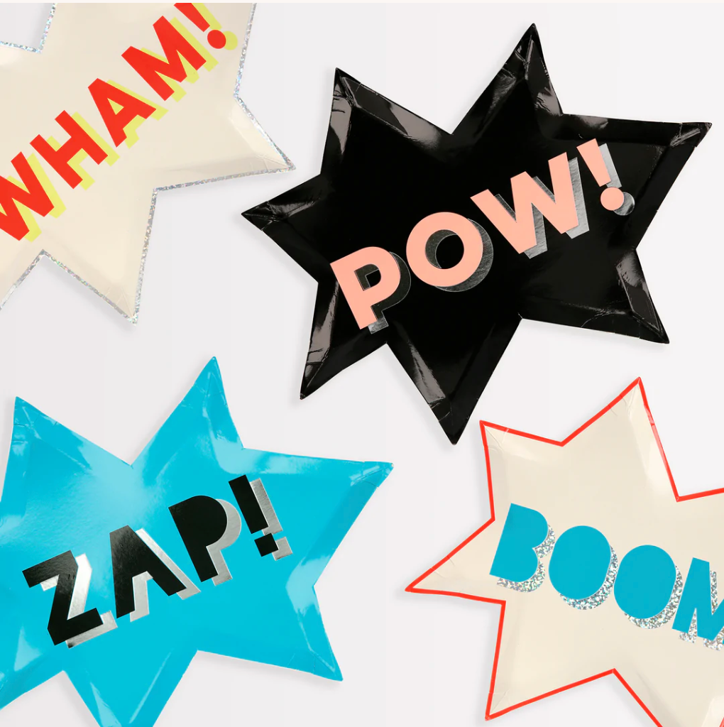 Disse platene kommer til å se imponerende ut på festbordet! De vil få alle gjestene til å rope ut "Zap, Wham, Pow and Boom!".