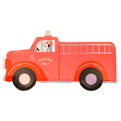 Disse fantastiske brannbil tallerkner er laget av tykt papir. Det detaljerte designet inkluderer livlige farger og skinnende sølv holografisk folie.
