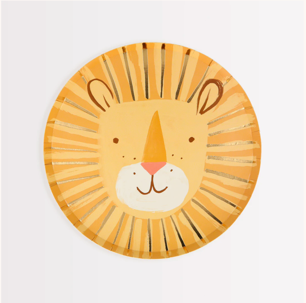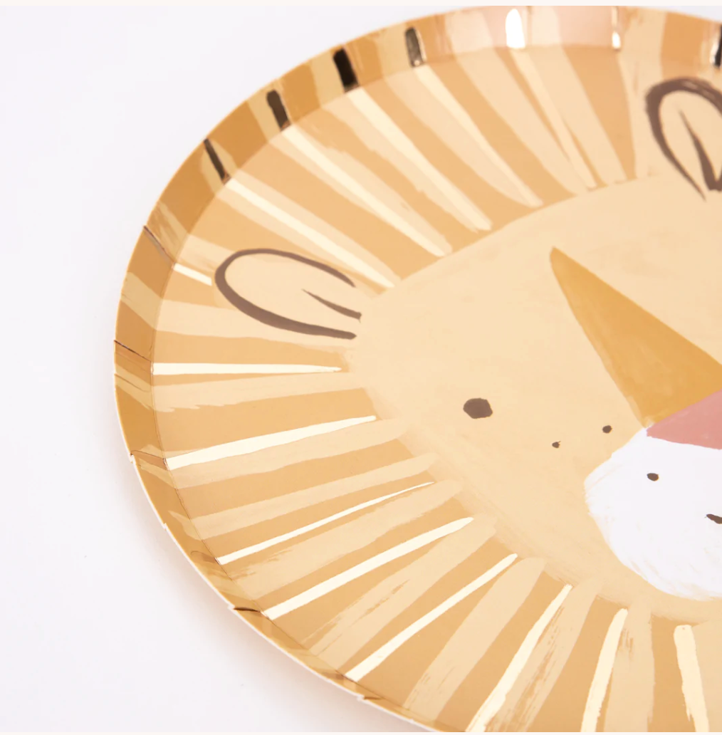 Disse herlige løvetallerknene , med en bedårende illustrasjon og skinnende gullfoliedetaljer, vil se fantastisk ut på festbordet. De er perfekte for en skikkelig vill fest med safari- eller dyrtema!