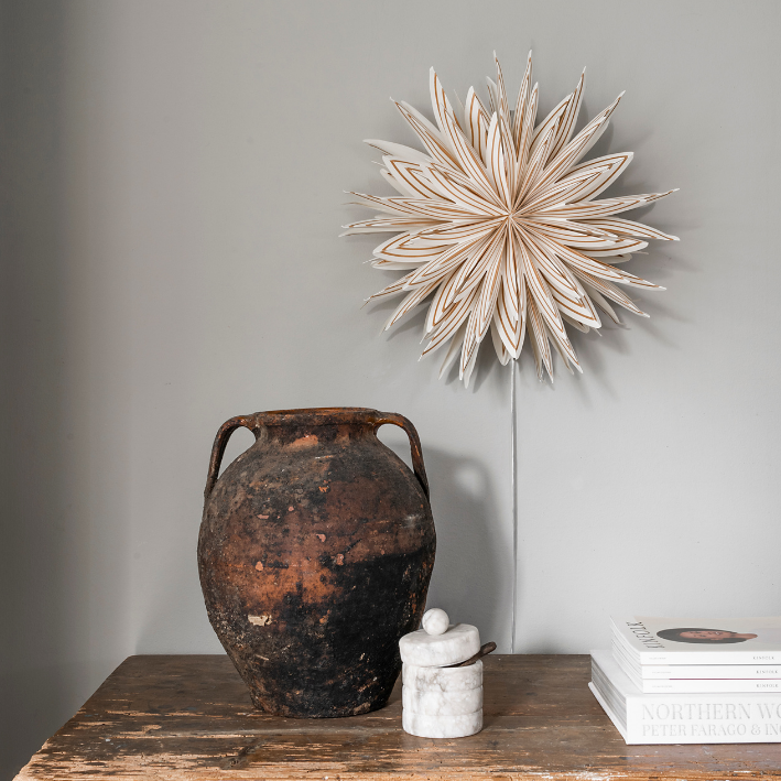 Stjernens iøynefallende utseende gjør den til et herlig blikkfang i hjemmet samtidig som den sprer en herlig julestemning i omgivelsene sine. Heng adventsstjernen i vinduet eller sett den på kommoden i soverommet som en fin detalj.