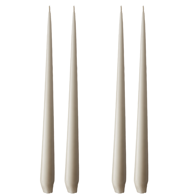 De selvslukkende lysene brenner med en rolig og jevn flamme. De er håndlagede, høye og slanke, og har en elegant spiss som kjennetegner Ester & Erik-lys.