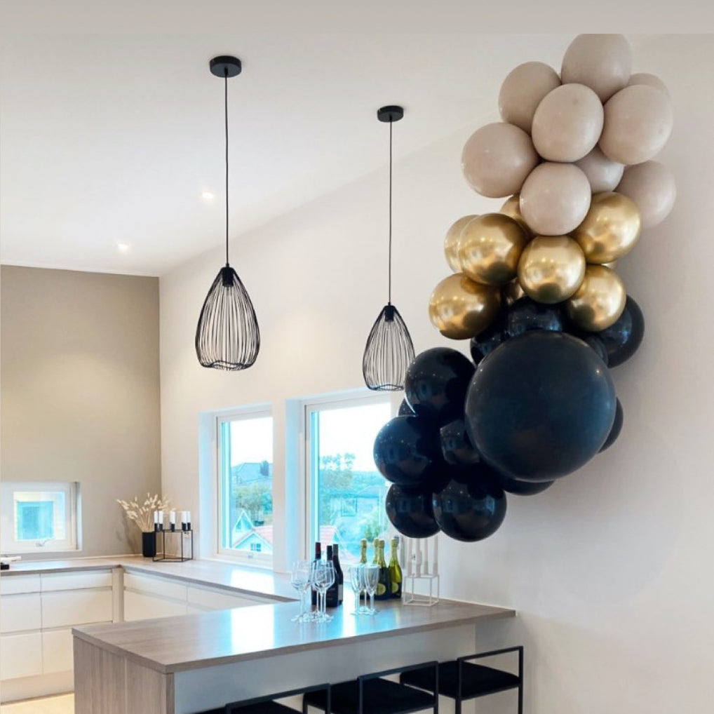 Nå leverer vi en ferdig oppblåst ballongsky med vår signatur stil. Perfekt til pynt av stue, balkong eller en hagefest.