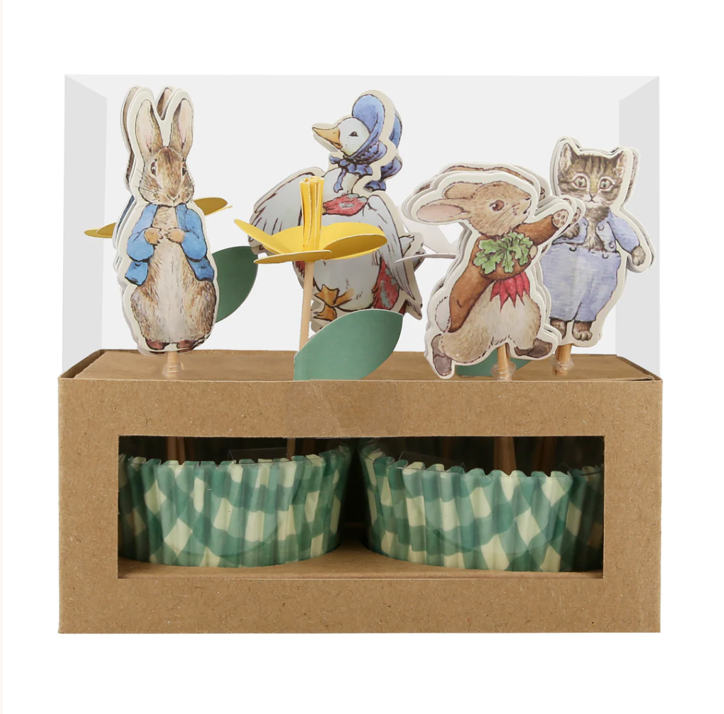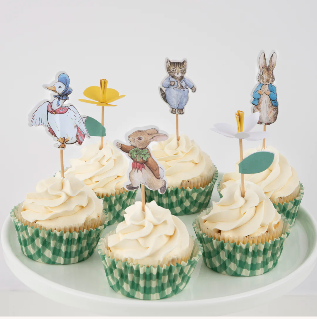 A beautiful baking kit with cupcake toppers featuring sweet illustrations of Peter Rabbit and friends. The gingham cases add an on-trend touch that's perfect for Spring.