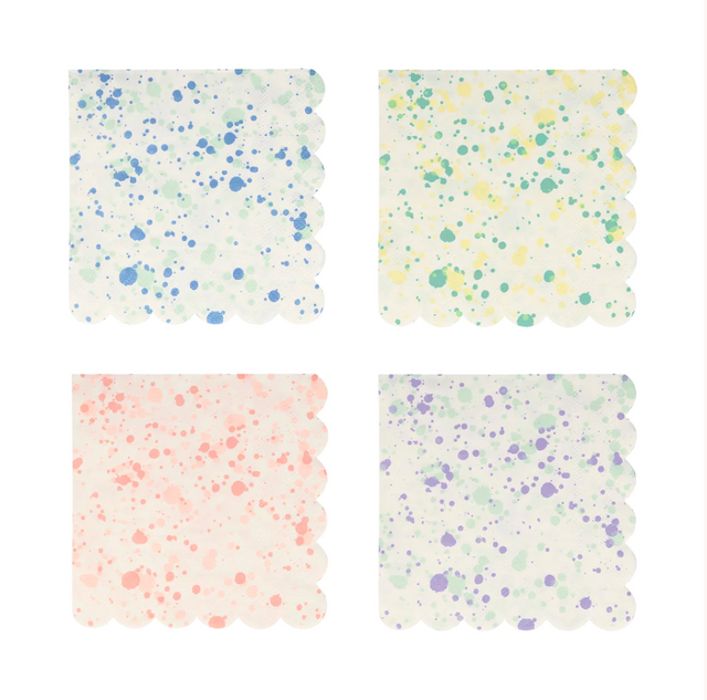 An easy way to get lots of color on your party table is with napkins in a mixture of shades. These fabulous speckled paper napkins, in 4 colorways and with scalloped edges, look really stylish.