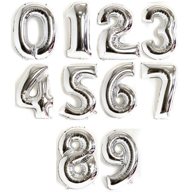 Tallballong i sølv! Denne store ballongen kan brukes både med luft og med helium.
